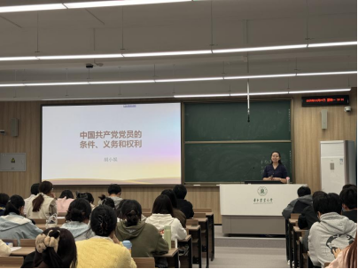 (通讯员 杨汶霖、缪舒熳)10月27日晚19:00,食科院第88期党校第一次线下课程在三教A203教室举行,马克思主义学院胡小娱老师担任此次课程讲师,为学员们讲授了一堂主题鲜明、内容丰富的党课。