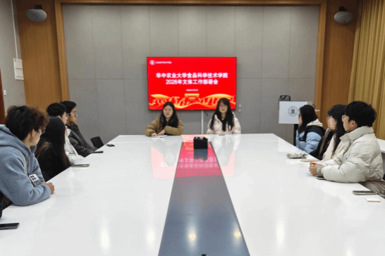 为进一步繁荣校园文化生活,落实学校体育美育育人要求,凝聚学生文体队伍力量,3 月6日中午,食品科学技术学院体育部、文艺部在新工科楼 122 会议室召开 2026 年文体工作部署会。学院辅导员万心怡老师主持会议,2025 级各球队、艺术团负责人齐聚一堂,共话新学期文体工作新思路、新目标、新举措。
