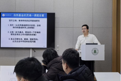 杨鹏教授以 “顶天立地:做有特色的应用基础研究” 为主题,系统分享了其深厚的学术积淀与丰富的基金申报经验。他深刻指出,有价值的科研工作既要追求“顶天”---致力于从应用基础研究中凝练出基础科学的原创突破;更要坚持“立地”---始终面向国家重大战略需求与民生改善,聚焦真问题。他鼓励与会教师从日常生活观察、产业实际需求、国家政策导向及科技前沿动态中敏锐捕捉并凝练科学问题,勇于挑战学术经典,积极推动学科交叉融合,逐步构建独具特色的科学研究体系。